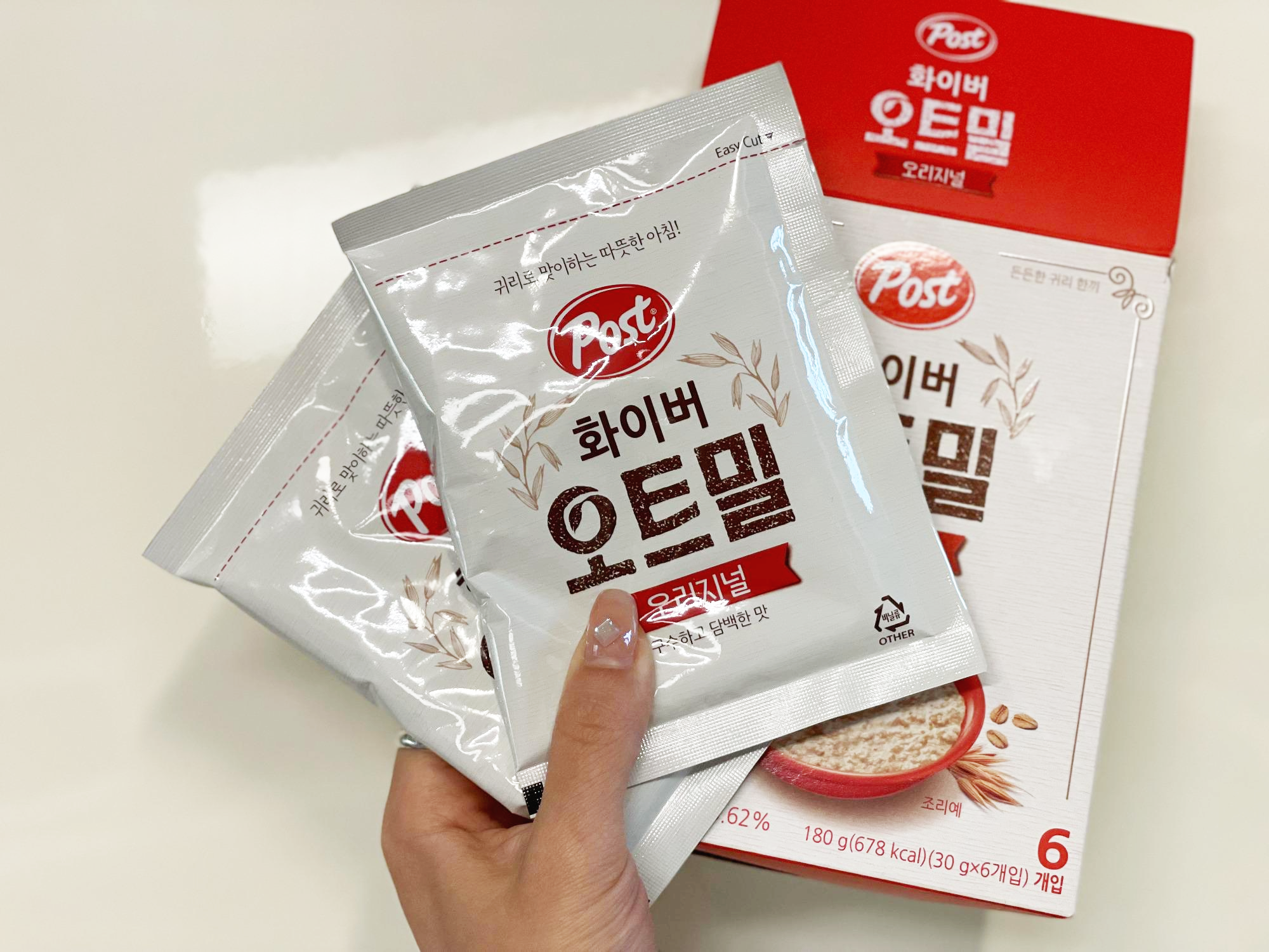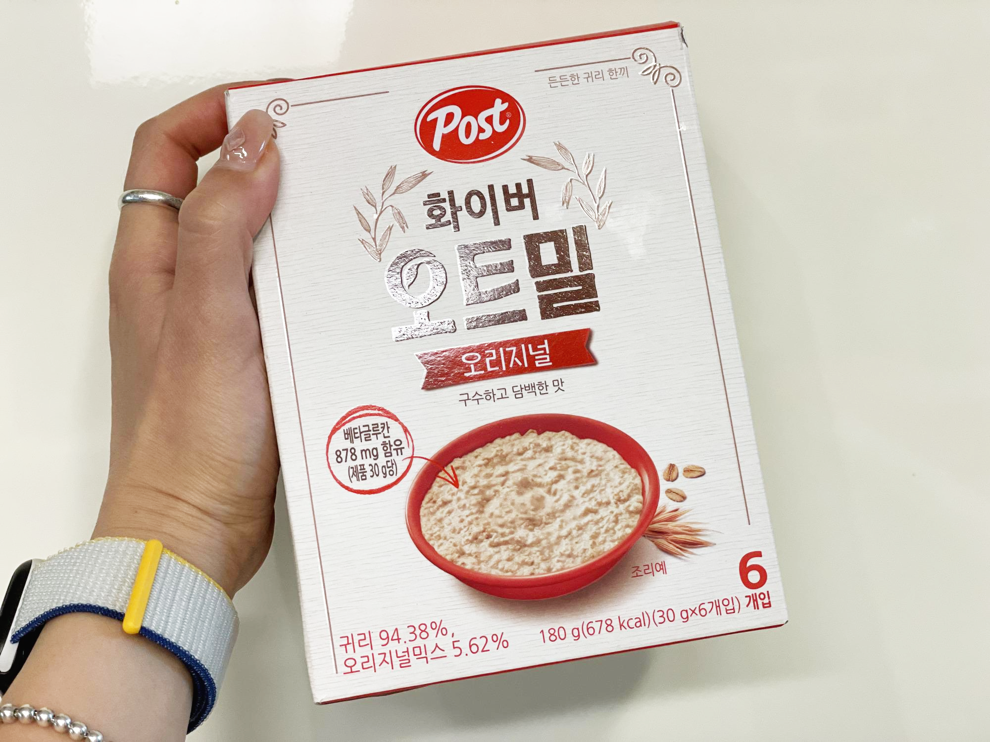 저는 마트에서 쉽게 구할 수 있는 포스트의 화이버오트밀을 구매해서 먹고 있어요!!