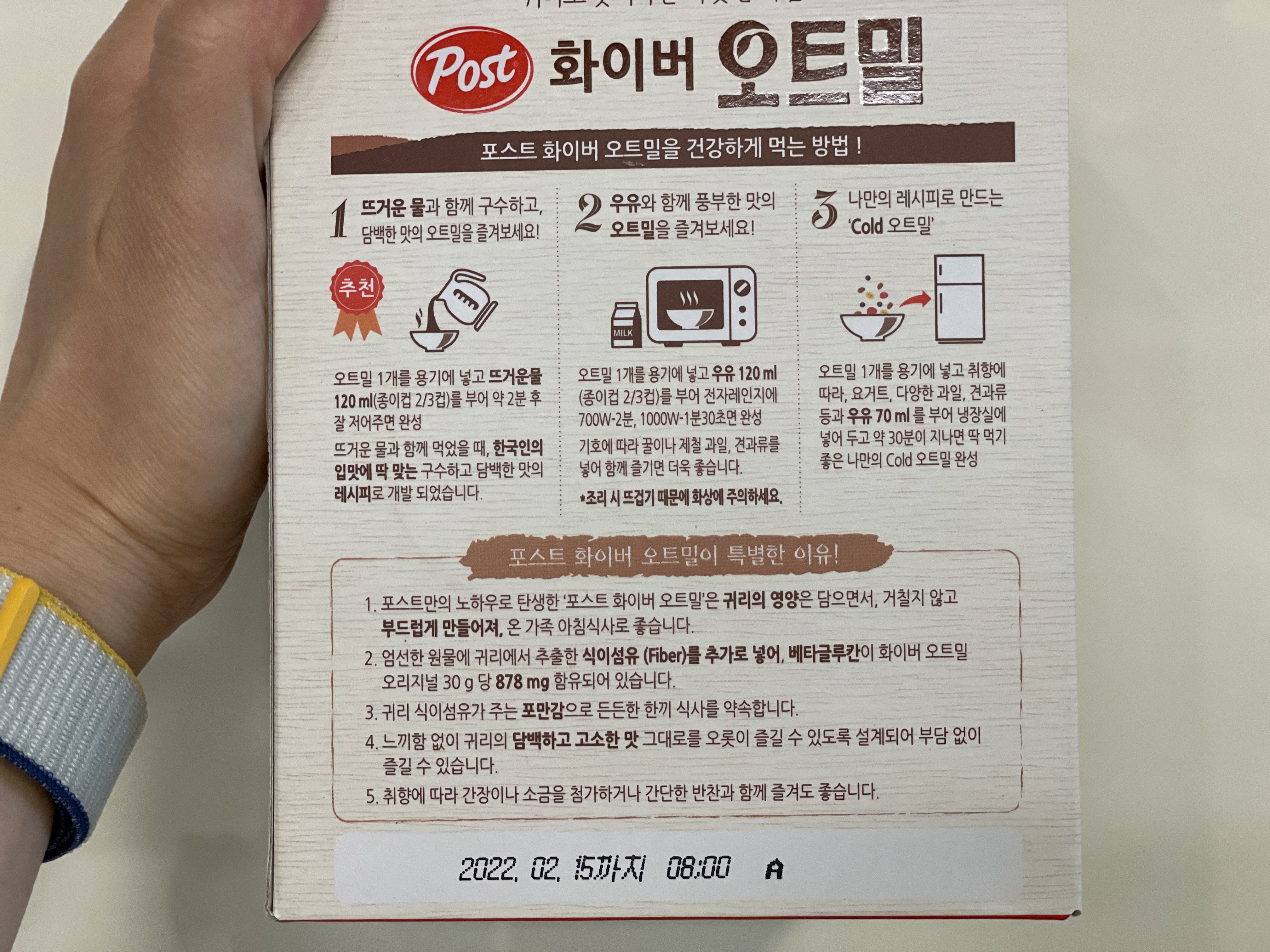 저는 포스트의 화이버오트밀로 선택했죠!! 미리 말하자면, 두께감도 딱 적당하고 맛도 좋았어요!!